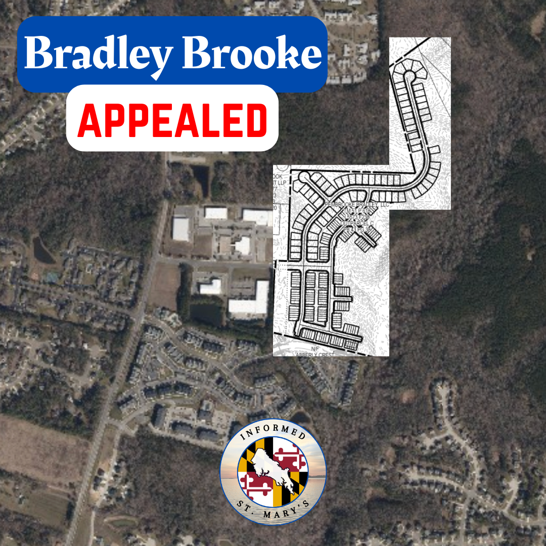 The Board of Appeals will meet on Thursday, March 26 at 6:30PM in the Chesapeake Building at 41770 Baldridge Street in Leonardtown. If you have comments about the development, attend the meeting or send an email to sherrie.young@stmaryscountymd.gov