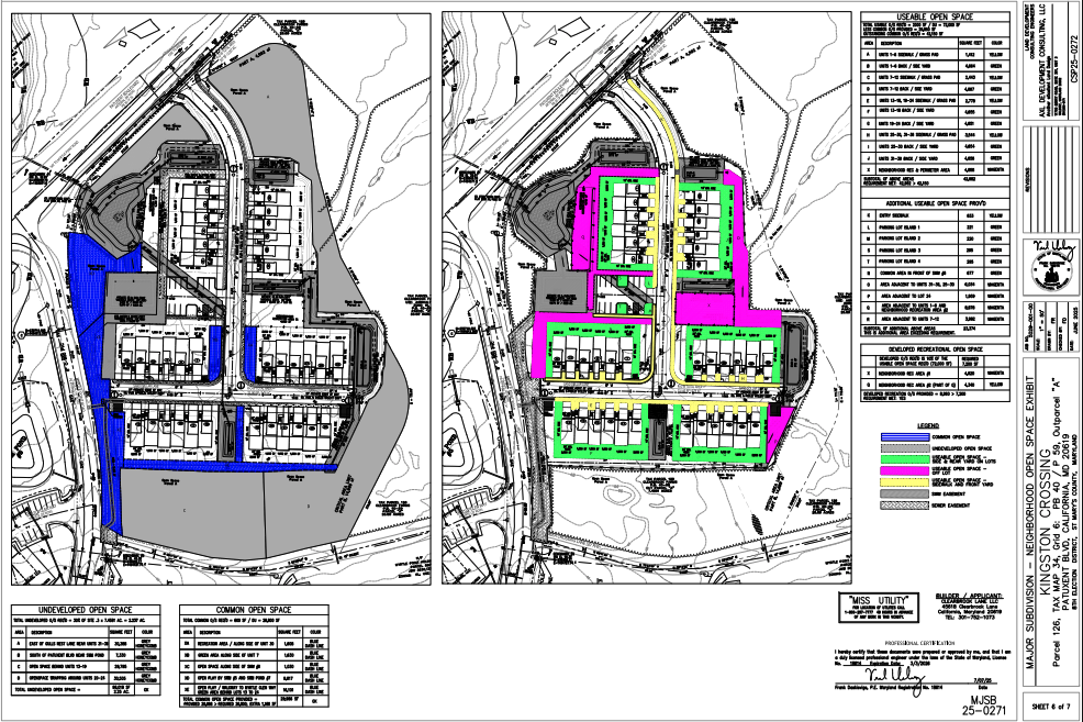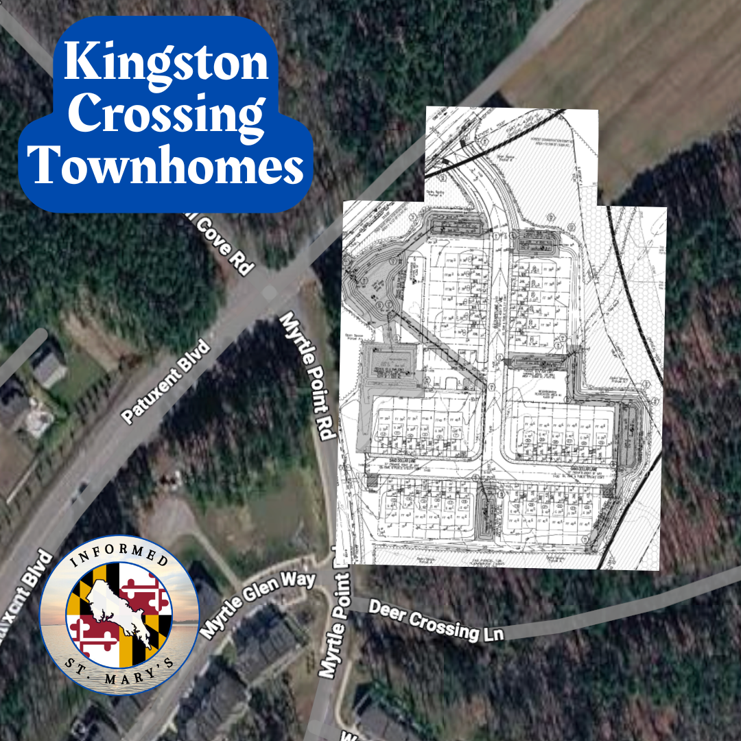 Kingston Crossing, a thirty-six unit townhome development, was approved by the Planning Commission on March 23. At the corner of Myrtle Point Rd and Patuxent Boulevard in California, the neighborhood is slated for a 7.45 acre parcel zoned as residential low density. The developer is required to purchase twenty-nine transferable development rights to increase the base density per acre to achieve thirty-six total residences.