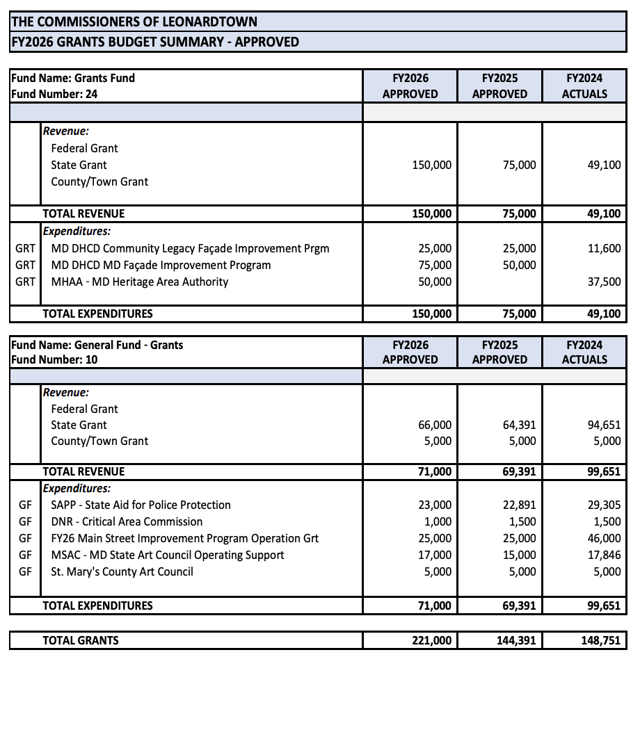 Leonardtown’s FY2026 Approved Budget offers a roadmap of how the town government allocates resources to achieve its goals. From infrastructure projects to day-to-day services, this budget reflects planning designed to serve both current residents and future generations.