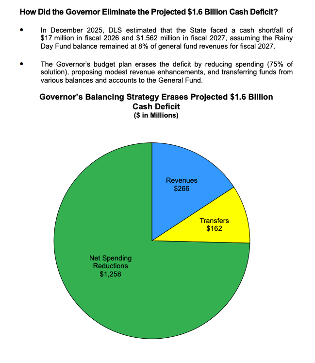 First, DLS reports that spending in FY27 “exceeds ongoing revenues by $394 million.” While notable, the figure remains within the Spending Affordability Committee’s guideline of limiting the structural deficit to no more than $600 million.