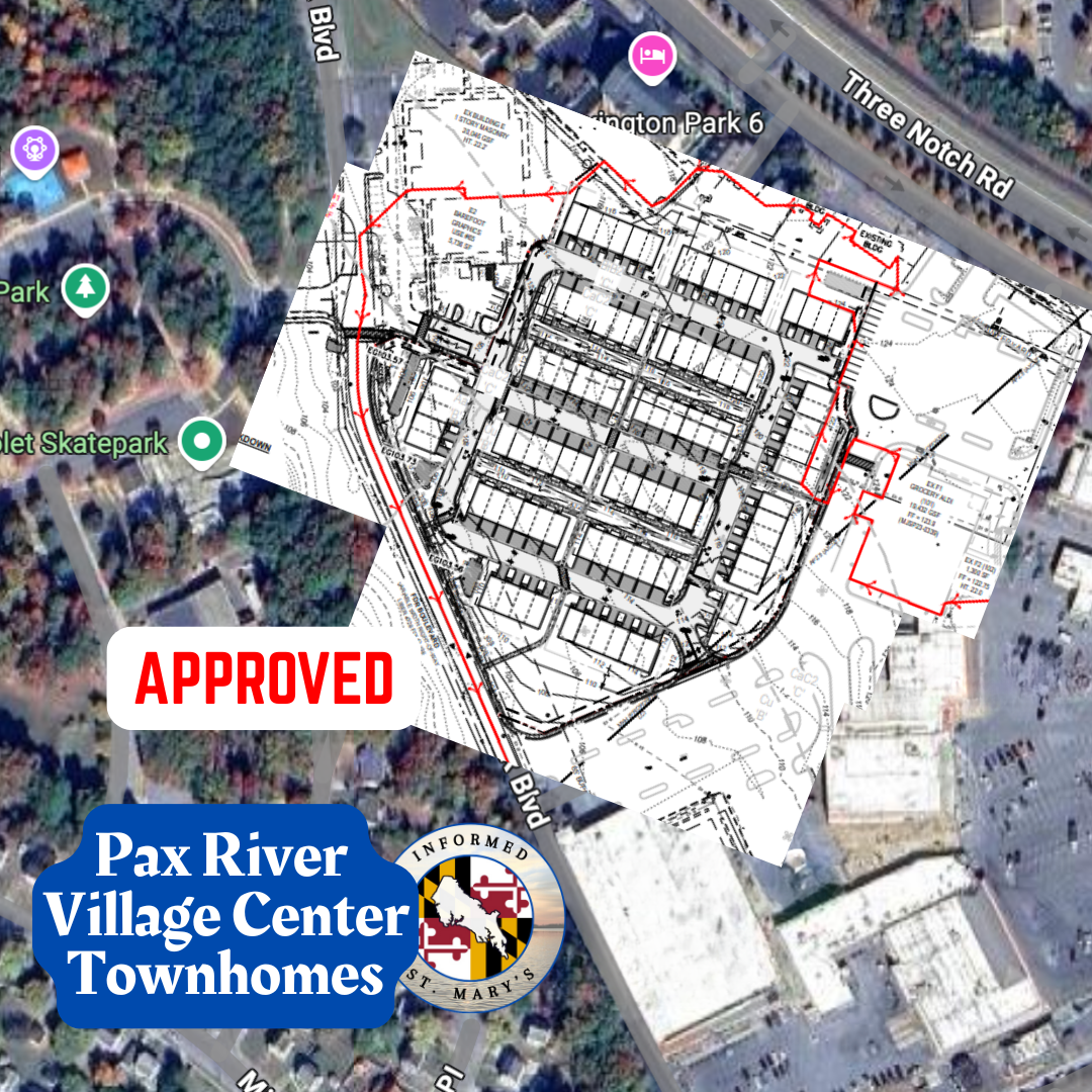 On May 20th, the County Commissioners approved a public hearing on the rezoning of this property. The public hearing is scheduled for June 24, 2025 at 9am, at 41770 Baldridge St. in Leonardtown. Comments about this development, and whether or not the Commissioners should rezone the property, can be sent to csmc@stmaryscountymd.gov.