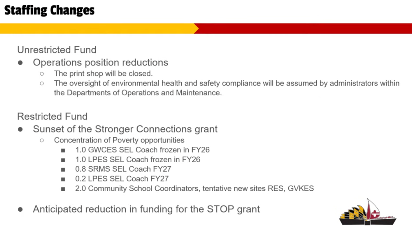 Three additional social worker positions are expected to be eliminated due to reduced funding from the federal Services, Training, Officers, and Prosecutors (STOP) Violence Against Women grant. Gov. Wes Moore’s proposed FY2027 budget funds the program at roughly half of its previous level. “You will not see a proposal” to continue those positions, Superintendent Scott Smith said. “We have to protect the classroom first and make sure that instructionally we’re able to deliver.” Maryland received more than $6 million in STOP grant funding last year.